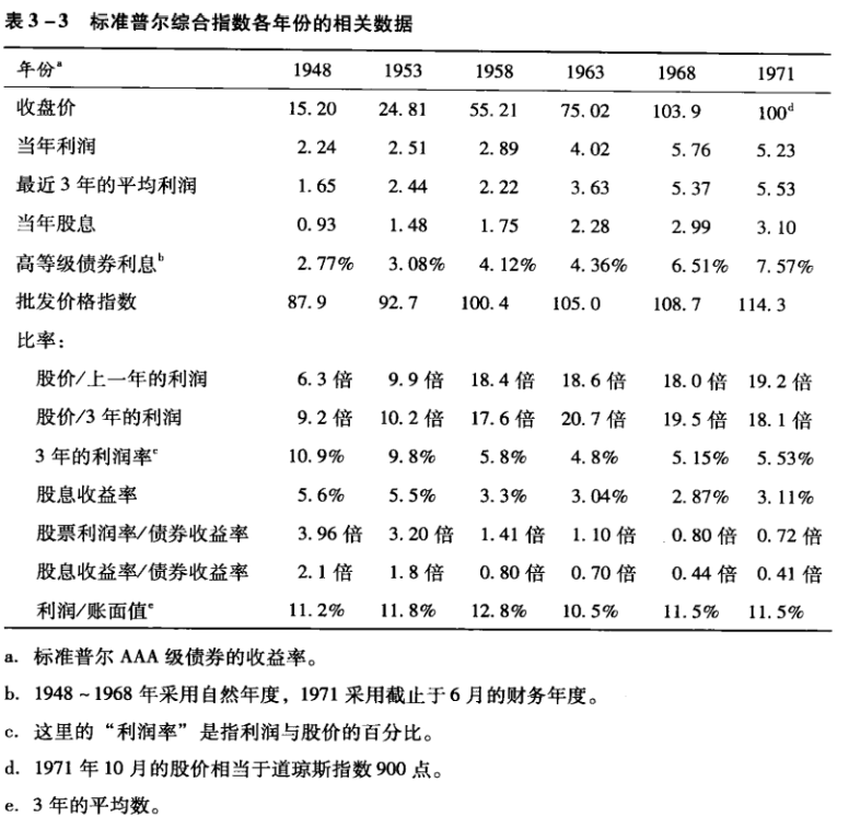 • 第二,透過一系列10年期的數據,包括股價、盈餘和股息,觀察這三個重要因素之間的各種關係。有了如此豐富的資料,我們就可以對1972年初的股價水準做出適當的分析了。